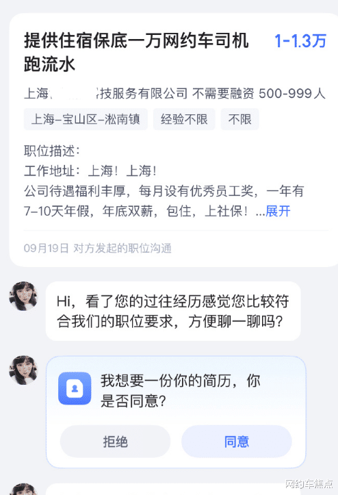 打开招聘软件,“提供住宿保底一万”“网约车司机” 的岗位特别扎眼。就比如这家,把 “月入 1-1.3 万”“包住上社保” 写得明明白白,还主动发来消息要简历。可明明打开打车 APP,附近空车一堆,网约车市场早被说 “饱和” 了,这些公司图啥?