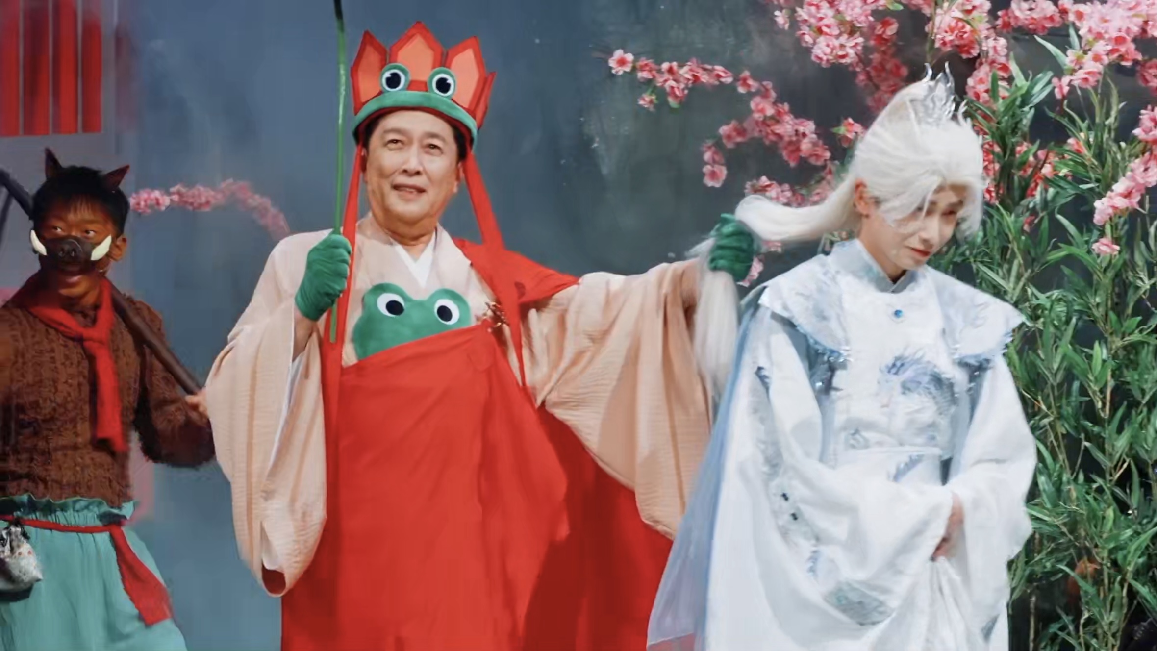 开场画风就十分清奇,于洋顶着美猴王的造型出场,沙溢本色扮演黄皮沙僧,却被金靖无情嘲笑“沙僧,你怎么得黄疸了!”杨迪的二师兄八戒更是节目效果十足,自称“卤猪头!”另一边把王牌拉回了颜值赛道,彭昱畅cos起了白龙马,白毛造型让人直呼:去哪找这么帅的坐骑!关晓彤扮演猫妖美出新高度,猫耳造型尽显俏皮~宋亚轩这波更是让狗塑粉狂喜,化身萨摩耶“耶妖”亮相,现场尖叫声此起彼伏,没有人会拒绝一只热情小狗!