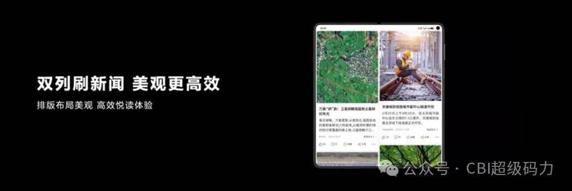 此外,"双列刷新闻"功能以卡片形式展示新闻,参考"科学人因实验",智能调整图片横纵比例,使排版布局美观,用户指尖滑动即可快速"刷"到重要新闻卡片,实现高效且沉浸式的新闻浏览体验。