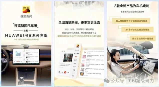 特别值得一提的是,搜狐新闻与华为问界全系车型达成合作,支持 AI 智能语音播报、多种方言、倍速播放,拥有科技、财经、汽车等 13 个精选频道,为车主提供了优质的新闻收听体验。
