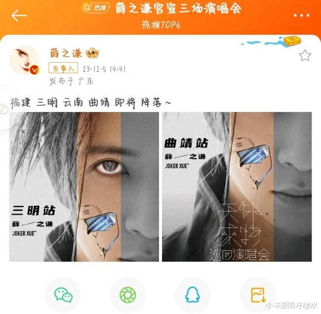 薛之谦再次官宣了三场演唱会,让粉丝们热血沸腾。分别在福建三明和云南曲靖举行,其中福建三明将于12月16日和17日连续两场,云南曲靖则定于1月13日一场。这场音乐盛宴让粉丝们期待不已。