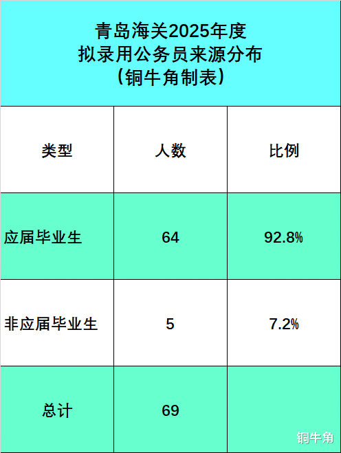青岛海关2025年拟录用69名公务员,其中有64名应届大学毕业生,占比92.8%。