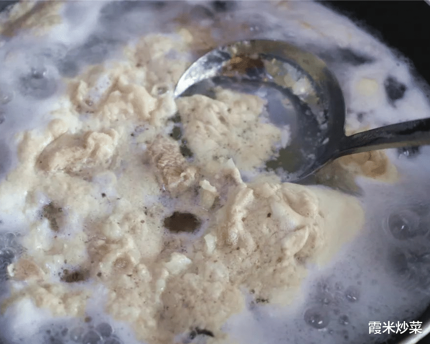 8往里倒很多热水,得没过羊肉还要多出一些,接下来加半勺老抽来改变汤的颜色。等大火把水烧开后,把火调小,让羊肉慢慢煮到熟。
