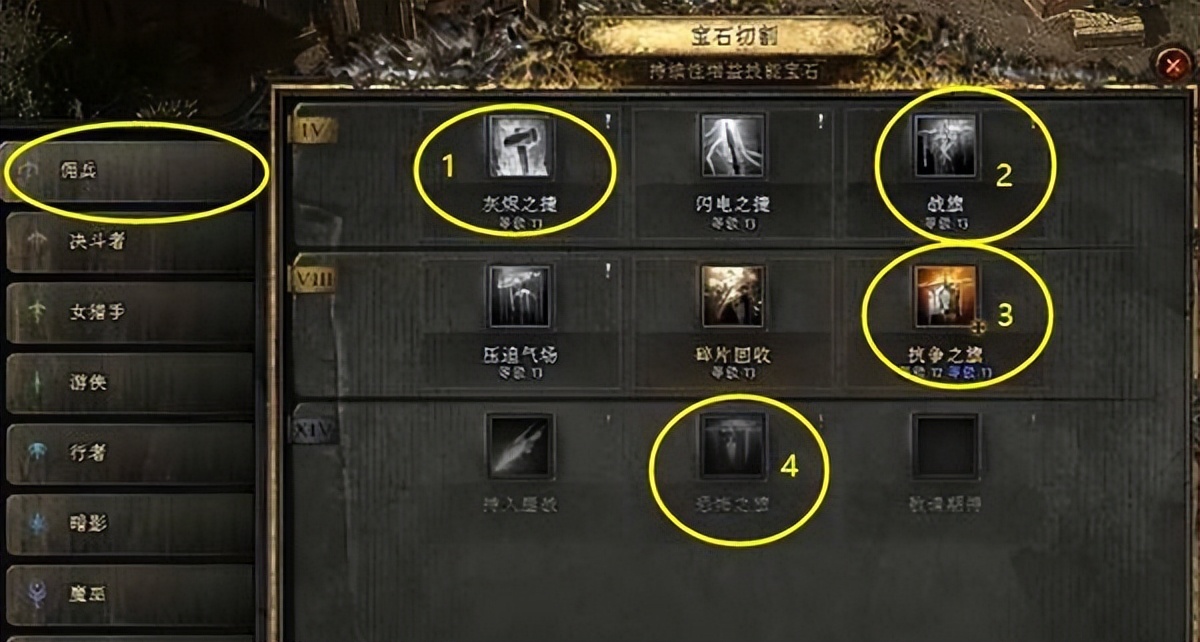 第五阶段(80-级100级)这个阶段我们已经基本上保底4连技能了,点出宝石爱好者天赋,获取一个不错的增益。如果你有较多的闪避,还可以点出霸体,进一步提高护甲。如果有包围头之后,我们点包围圈相关的天赋。如果你能够稳定的打出破甲,这也是一个非常不错的伤害提升的天赋点,一般来说要结合闪光弹,或者升华改成定身相关。升华天赋