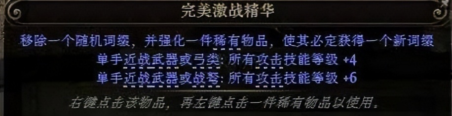 5.此时,我们的装备后缀已满,购买如下完美激战精华,由于这个精华词是需要占用后缀的,因此它必然会吃掉一个后缀,替换为+6等级