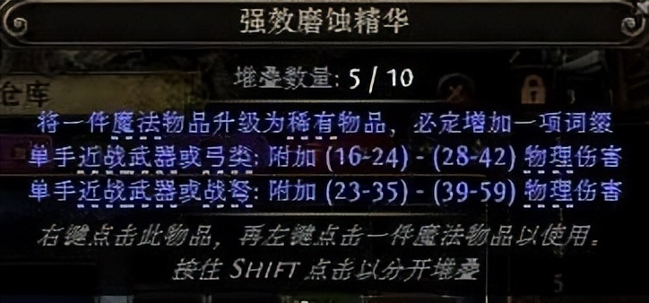 800大伤毕业弩1.需要弄T1词缀物理点伤或者物理百分比2.4词缀后,上破溃宝珠锁到我们需要的物理T1词3.使用剥离石将词缀删除到仅剩2条4.购买混沌石,一直洗,直到出现一个较高的物理百分比词或者另外一个物理5.后续的步骤参考深渊亵渎词缀之后的做法差不多了