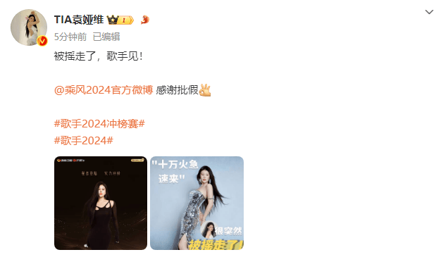 6月13日,《歌手2024》正式官宣尚雯婕和袁娅维加入冲榜赛。袁娅维也发文称“被摇走了,歌手见!”,随后还感谢《乘风2024》节目组给自己批假。