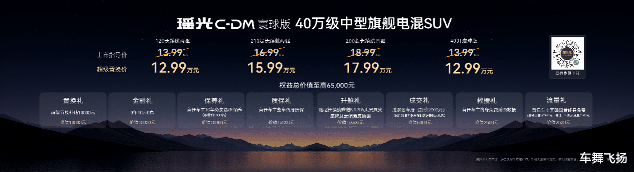 本次上市共有瑶光C-DM寰球版120长续航两驱、210超长续航两驱、200超长续航四驱 3款配置版型,指导价分别为13.99万元、16.99万元、18.99万元。新车以40万级豪华品质、40万级豪华安全、40万级豪华性能三大核心优势,重新定义40万级旗舰电混SUV价值标准。同时,星途还为青睐燃油车的消费者提供了燃油版车型瑶光400T寰球版,指导价13.99万元。
