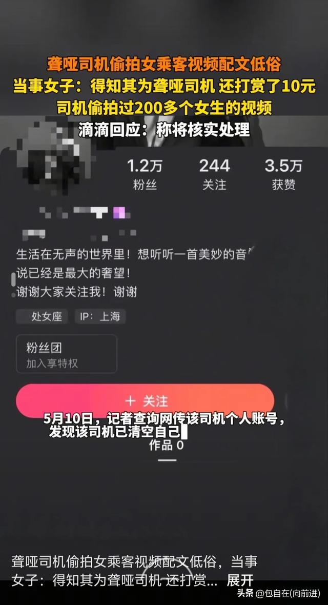 从事件细节来看,女子在得知司机为聋哑人后,出于善意打赏,却遭遇如此恶意对待,这种反差令人心寒。司机在车内私自安装360度监控设备,显然违反了滴滴平台仅允许使用官方录音设备的规定。而平台对司机私自安装高清摄像设备毫无预警系统,这无疑暴露了其监管的漏洞。司机账号中200多条女乘客视频,拍摄内容之广泛、细节之私密,让人不禁脊背发凉。从乘客的穿搭细节到肢体动作,甚至深夜归家的画面都被无情记录并传播,视频配文更是充满性暗示,完全将乘客的隐私当作吸引流量的工具 。