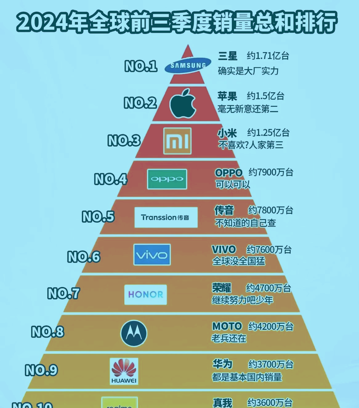 尽管全年销量数据尚未出炉,但从前三季度的销售情况已可窥见端倪。三星以1.7亿部的销量遥遥领先,苹果紧随其后,卖出1.5亿部,而小米则以1.25亿部的佳绩紧追不舍,展现出强大的市场号召力。OV等品牌与这三巨头之间的差距,犹如鸿沟,难以逾越。