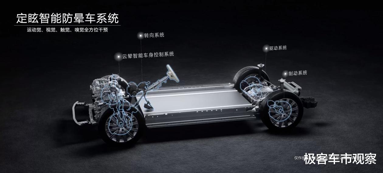腾势N9搭载定眩智能防晕车系统,并已通过“中汽中心”、“中国人民解放军空军特色医学中心”的严苛认证,该系统以云辇智能车身控制系统为核心,通过联动底盘、动力、座舱三大系统,实现对运动觉、视觉、嗅觉、触觉等全方位干预,让用户告别晕车!