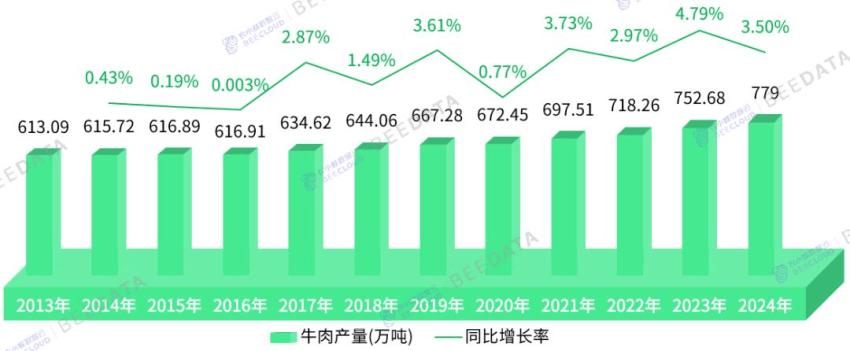数据显示,2024年,中国牛肉产量779万吨,同比增长3.5%,牛肉消费量1070万吨,同比增长4.29%。国内市场高品质牛肉供不应求,供给端呈现韧性增长态势。