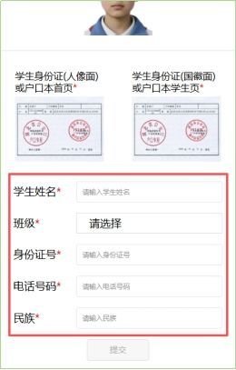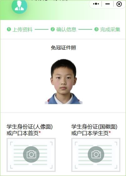 四、同样方式,拍照上传学生身份证(国徽面),或户口本学生本人页