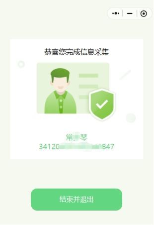 看到下方界面,代表信息已经成功提交,关闭小程序即可。如需再次核对信息和修改信息,重新扫描二维码,重复上述流程即可。