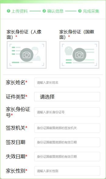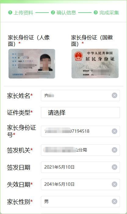身份证拍照上传后,小程序会自动识别身份证中的居民信息并填入表格中。家长需要仔细核对信息,确认无误后再提交。