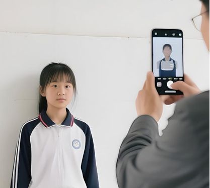 由家长拍照,学生站立,姿态端正,嘴巴自然闭合,表情自然,双目直视前方,双肩、双眼保持水平。(父母在外地的学生家长,可以由孩子身边的长辈拍照后微信发送给父母,再由父母上传)