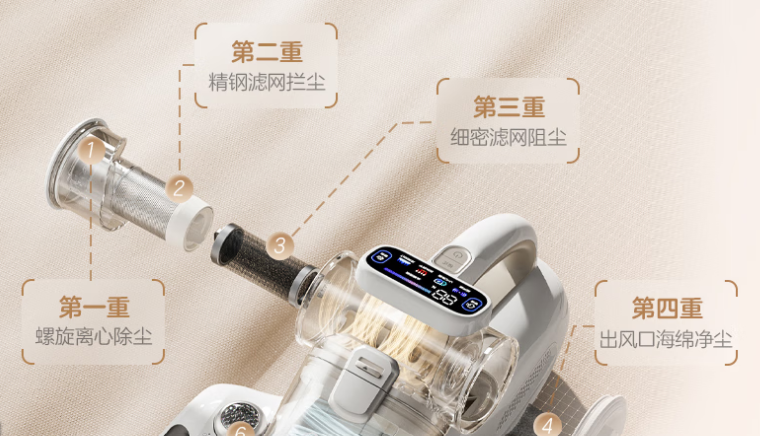 比如 “APP 控制”,除螨仪的使用场景很固定(就是清洁织物),手机操作反而不如直接按机身按钮方便;再比如 “智能屏显”,显示螨虫数量其实没有实际意义(肉眼也看不见),不如把预算花在吸力、杀菌这些核心性能上。新手选除螨仪,“够用、好用” 比 “功能多” 更重要。