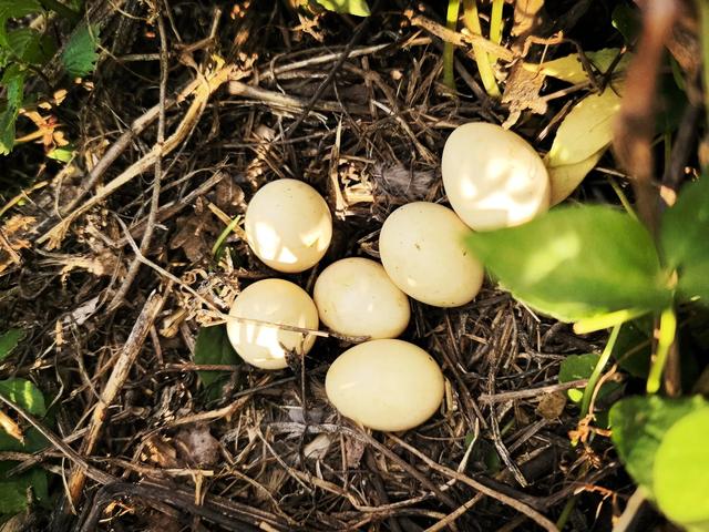 不远处,几只竹鸡突然惊飞,这才发现田埂上藏着它们的巢穴,几枚竹鸡蛋安安静静地躺在那里。想象着不久后,新生命即将诞生,我悄悄看了几眼,便轻轻离去,生怕扰了这份生命的期待。