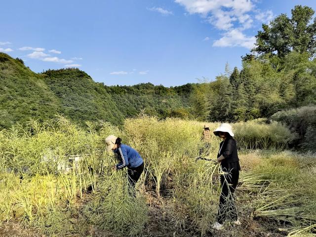 我和妻子约好,今天去帮兄弟家割菜籽。踏入南山,清风拂面,处处皆是金黄。沉甸甸的菜籽荚压弯了枝头,虽吹不起翻涌的菜浪,却在阳光下泛着柔和的银白光芒。蓝天白云下,虽说温度不算太高,可烈日高悬,才一个多小时,初夏的热浪便让人汗流浃背。