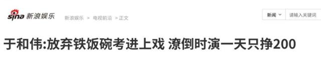 但这笔钱可不容易赚到,那时候于和伟偶然在电视上看到话剧,一下子就迷上了表演,