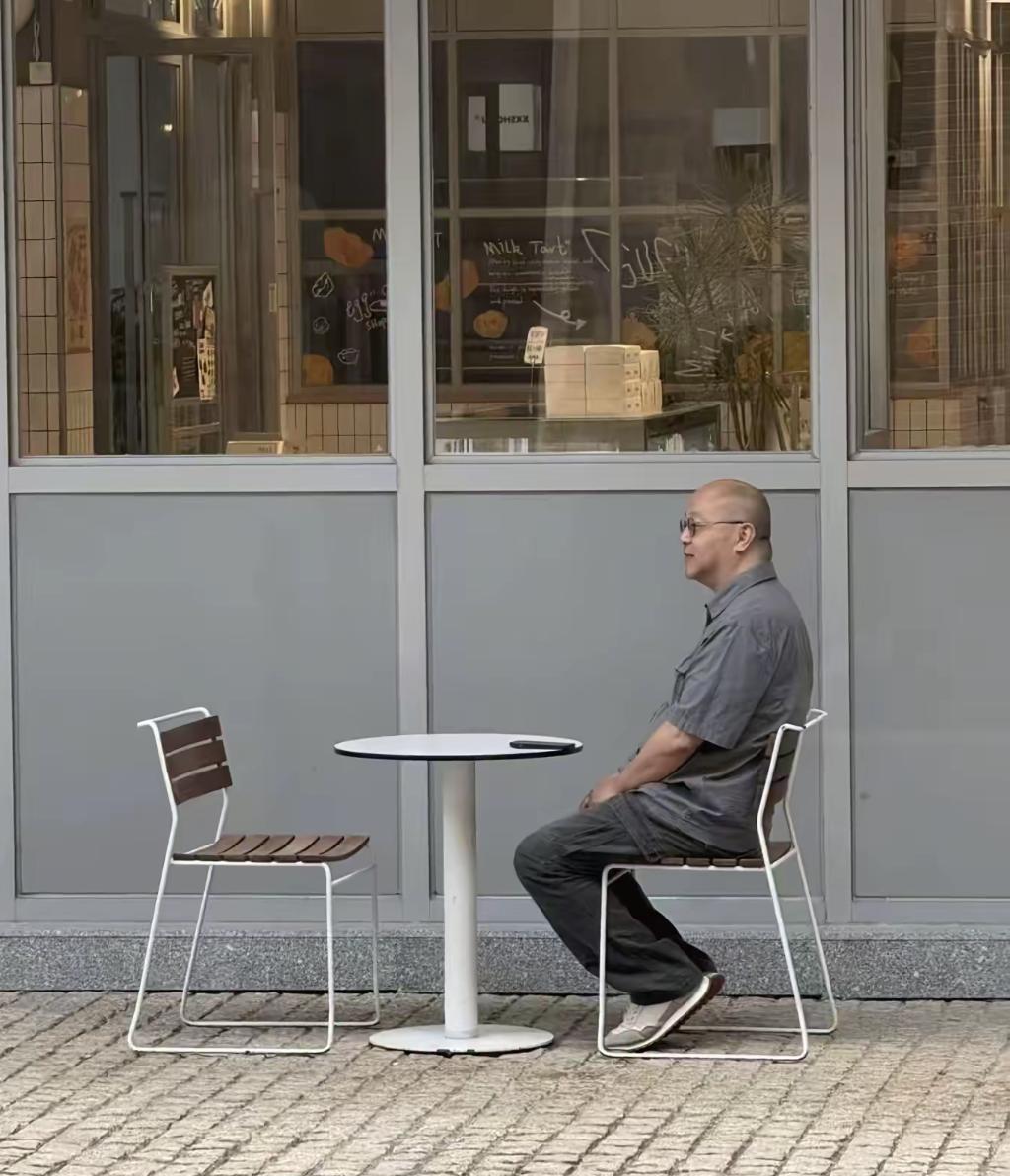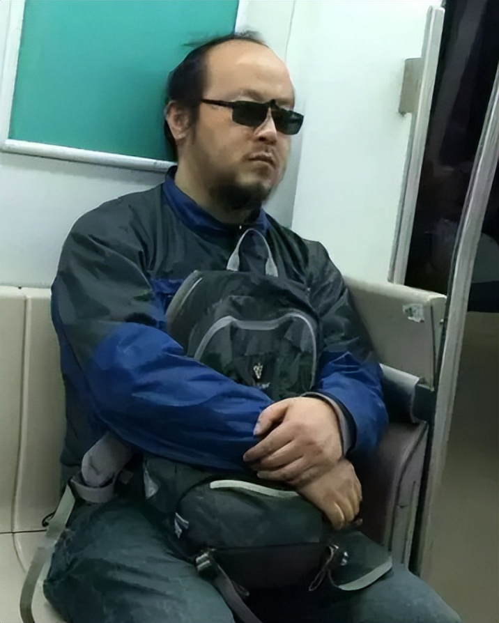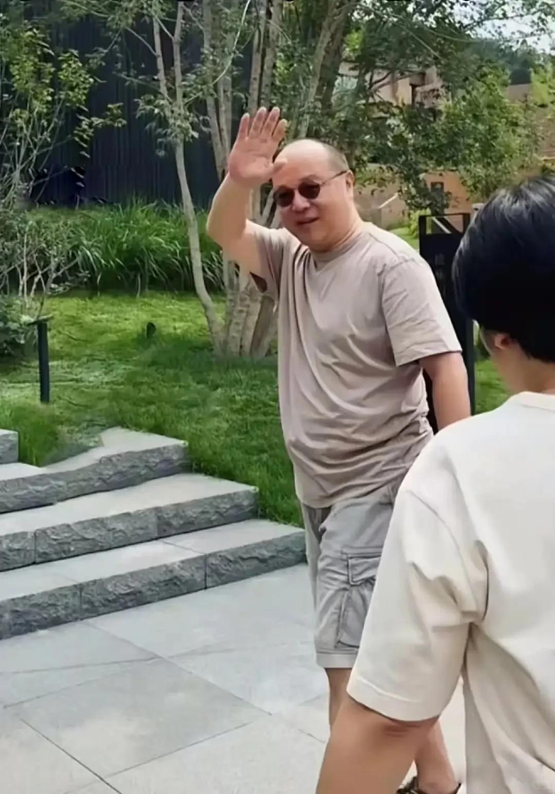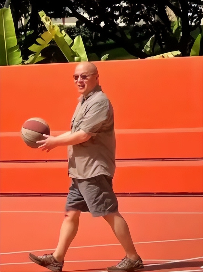 他剃了光头,减了肥,换了颜色鲜亮的衣服,戴着一副眼镜,气质平和。