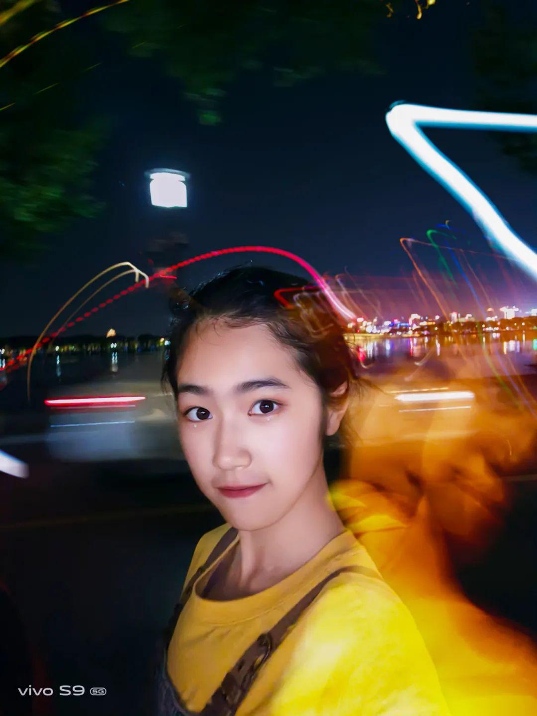 女儿喜欢用手机自拍还因为拍摄功能里有非常多的选项,比如星光,青橙,彩虹,油画等风格选项。女儿最喜欢玩的是这款“派对”选项。通过vivo S9闪光灯瞬间打闪可以保证暗光环境下拍摄出清晰的人脸,长曝光可以记录周围环境的氛围光轨。通过摇晃手机,每次都能给出不同的拍摄结果。既能拍的好看,又让拍摄变得好玩。所以女儿在来回的路上都一直在把玩这项功能。