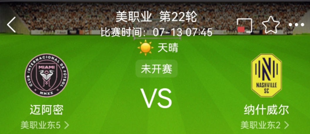 周六014 美职足 迈阿密国际VS纳什维尔 2025-07-13 07:45