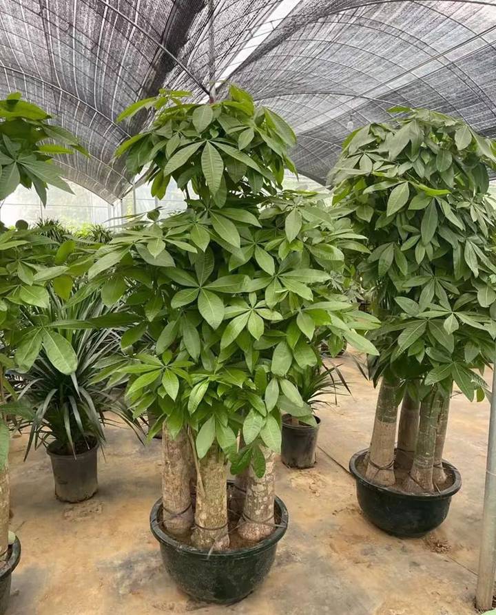 除了挑选,在日常养护方面也要用心。发财树喜光照却又怕强光直射,在春夏秋三季,适当接受充足的散射光,夏季可适当遮光 50%-70%,避免叶片被灼伤。冬季则要把它放置在朝南温暖的阳光处,能很好地促进光合作用。发财树有一定的耐旱性,所以浇水时要遵循“不干不浇,浇则浇透”的原则。一般来说,春秋两季每 3-5 天浇一次水,夏季每 1-2 天浇一次水,冬季由于气温较低,生长速度放缓,此时应控制浇水,在半个月左右浇一次水即可。
