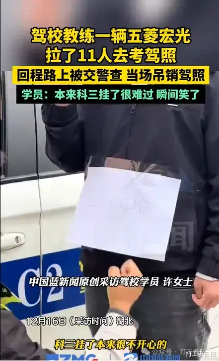 驾校教练一辆五菱宏光拉了11人去考驾照,没想到回程路上被交警查,当场吊销驾照。学员:本来科三挂了很难过,瞬间笑了。