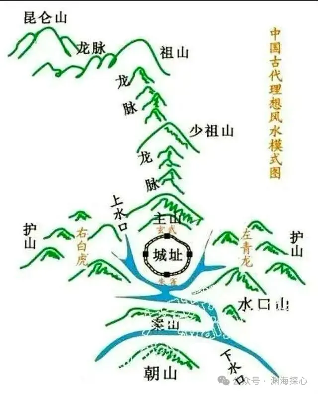 因此,一个理想的居住地,背后(北方)必须有高大厚实的山脉作为屏障,