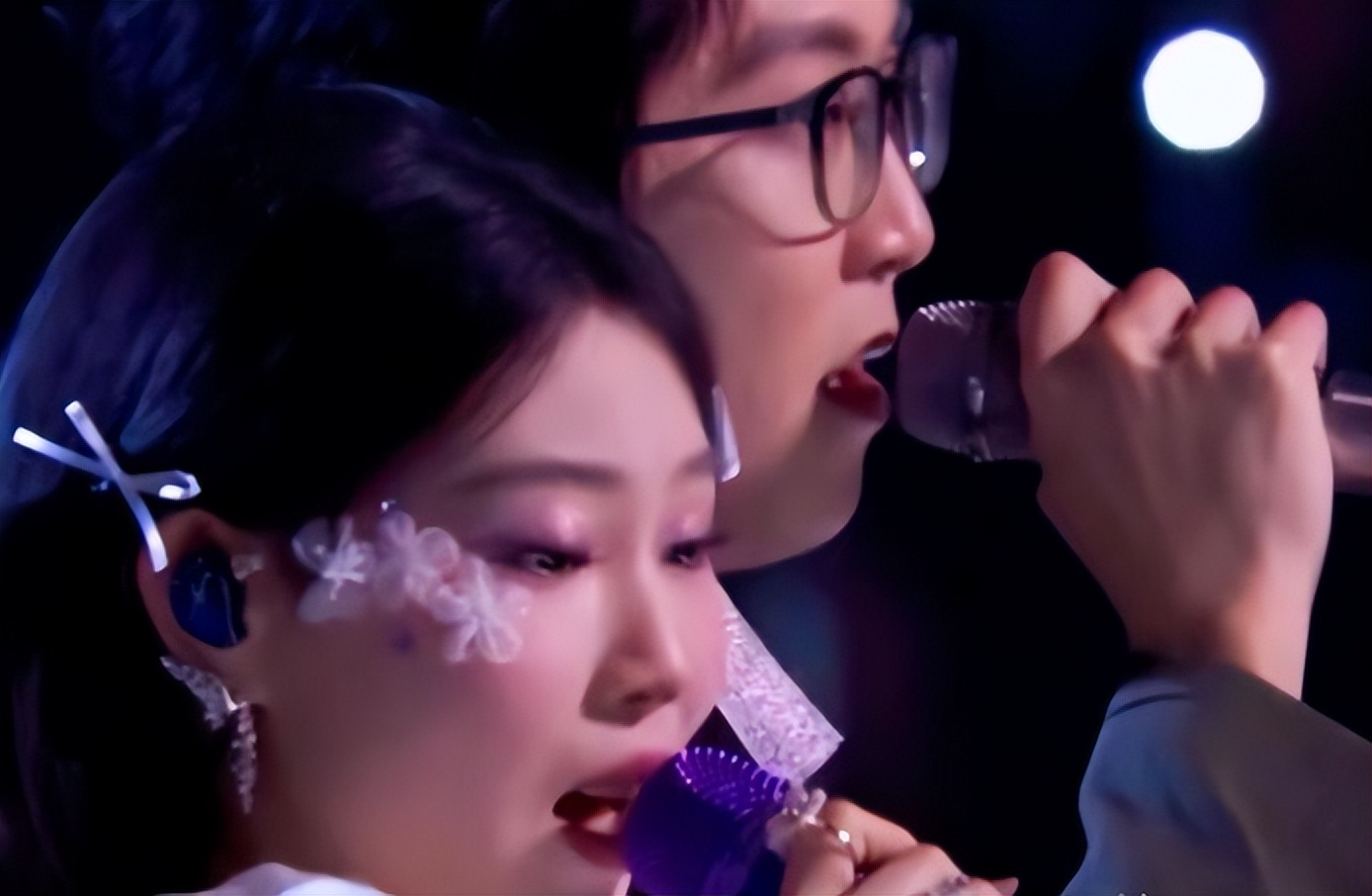 舞台上,毛不易和沈佳润要合作演唱那首经典的《不染》。