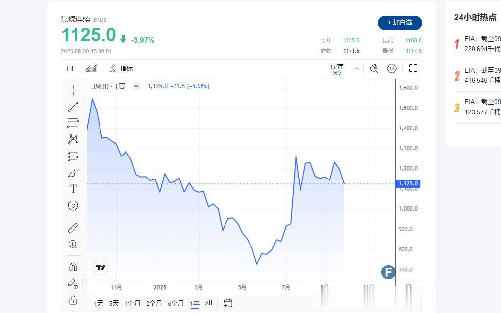 如果另外一个商品过去一年价格上蹿下跳,动不动连续来个天地板。比如说今年的上半年的氧化铝,下半年的焦煤,广期所三宝,通过统计学的复杂计算,就把这类商品的历史波动率定为30%或者更高。