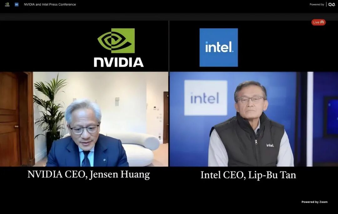 北京时间9月18日,英伟达宣布向英特尔投资50亿美元(折合人民币约356亿)。消息公布后的不久,英伟达创始人黄仁勋和英特尔CEO陈立武以线上发布会对双方的交易进行了说明。