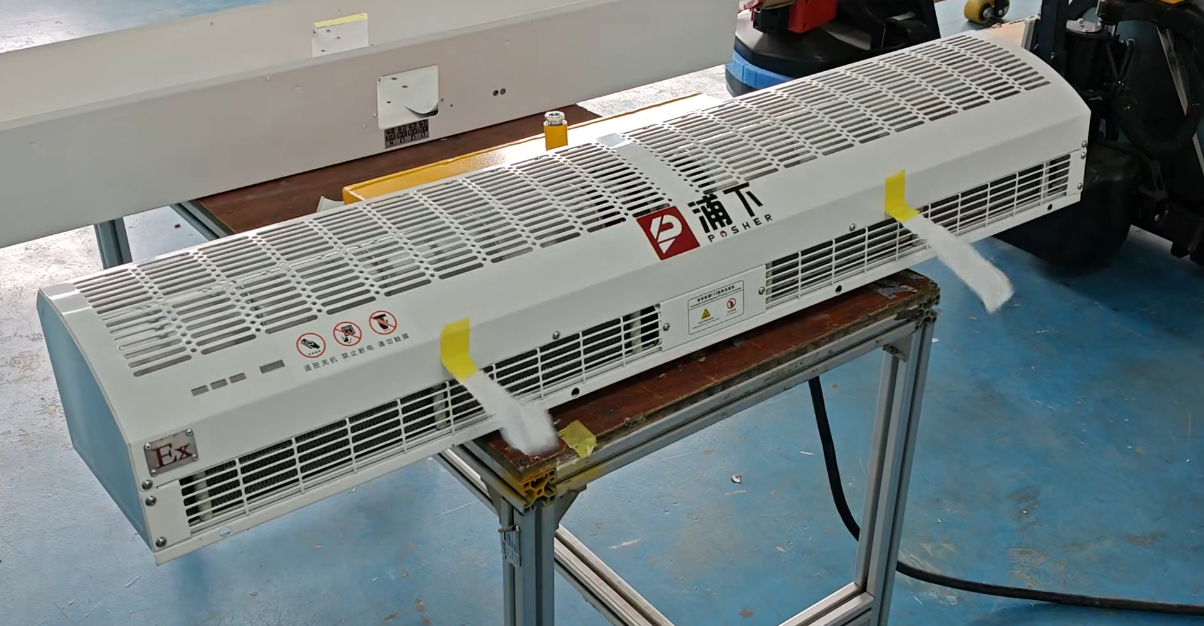 设备的风机系统经过精心设计,采用优质防爆电机与风轮系统,确保运行平稳、噪音低。风道设计经过流体力学优化,能够产生均匀、有力的气流,有效覆盖整个门洞区域。