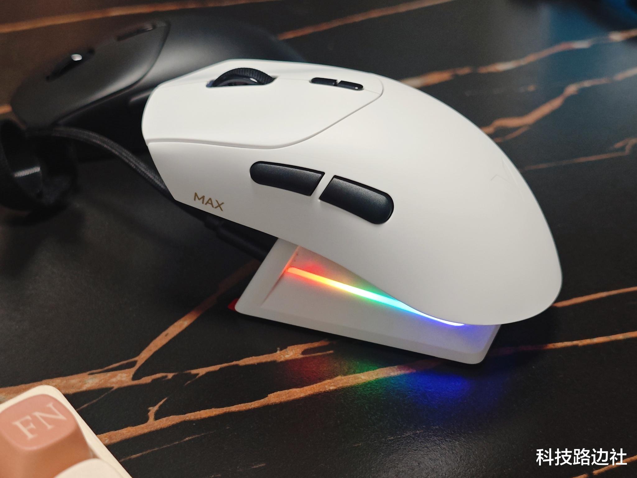 续航和充电无线鼠标,对于很多有电池焦虑的用户来说,确实是一大烦恼。不过VT7和VT7 MAX都配备了8000mAh的电池,在办公模式下,最长可以达到700个小时的续航,而即便在狂暴竞技模式下,也能有75~85个小时的续航时间。而且是支持无线以及触点式充电底座,个人比较喜欢这个带有RBG灯的P5充电底座,触点式的充电方式更精准,不会出现偏移位置充不进,日常闲置时,轻放接触就会吸住,并开始充电,非常方便。
