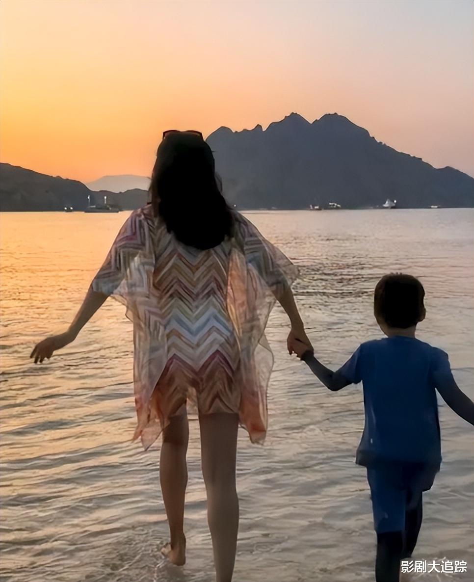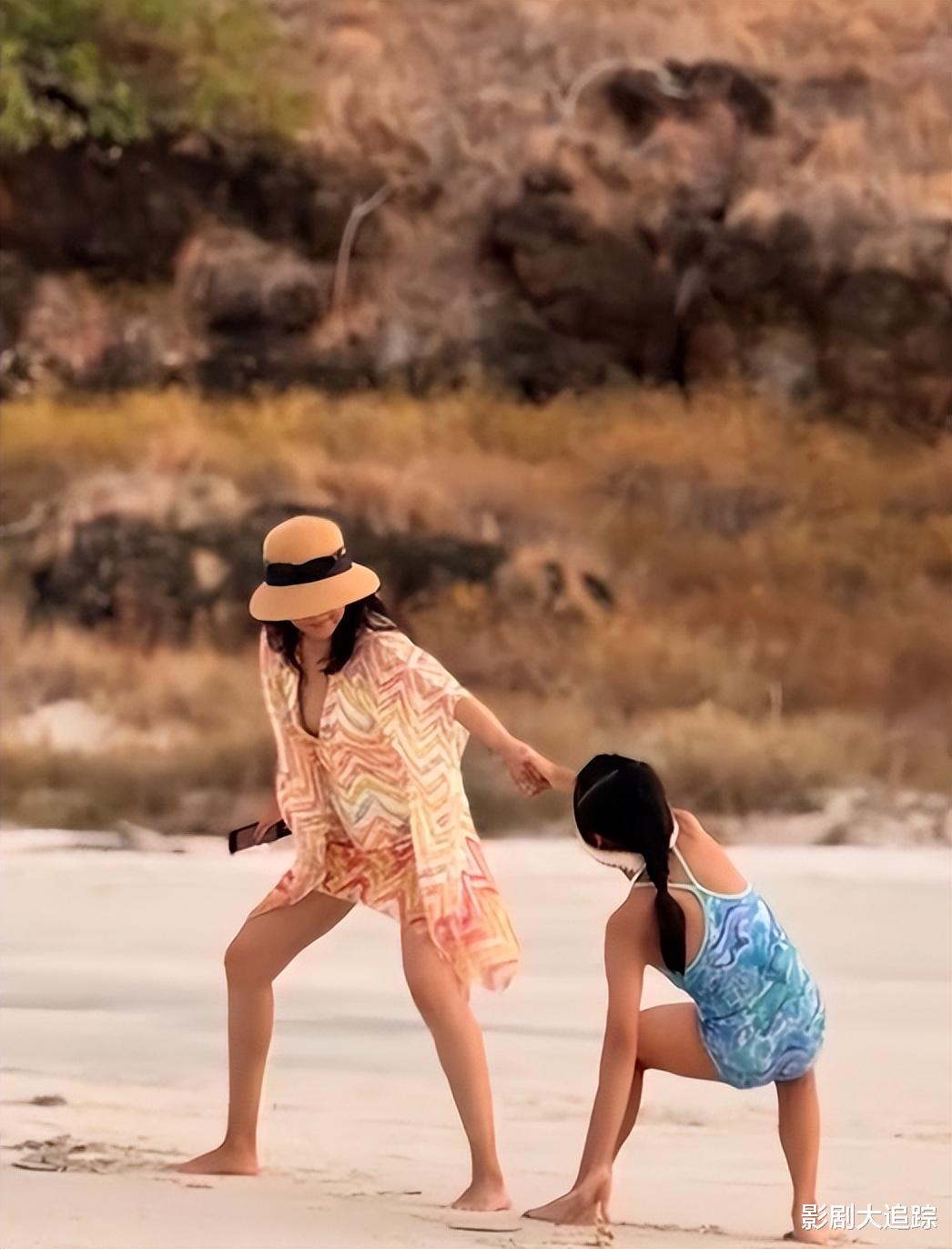与女儿互动间,章子怡也不忘关注小儿子的动态,知道他也喜欢大海,也会陪他一起海边大跨步飞跃。