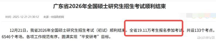全省19.11万考生报名参加考试,共设133个考点,6546个考场。较25考研(21.26万人)减少2.15W,降幅10.1%。
