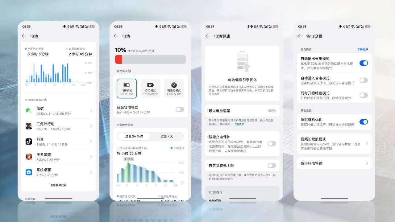 续航方面,一加Ace6T的8300mAh冰川电池堪称“续航怪兽”,依托新一代球形硅碳技术与X25硅碳负极,既提升容量又拉高能量密度,“出门不带充电宝”的宣传很实在。实测满电到剩10%撑了19小时:日常上班+下班游戏,亮屏8小时,微信(视频)、游戏、抖音是耗电主力。《三角洲行动》10%电能玩1.5小时,《王者荣耀》55分钟仅掉电9%,完全能实现“单位充电、下班畅玩”。建议开启智能充电保护、睡眠待机优化等功能,能进一步延长续航。