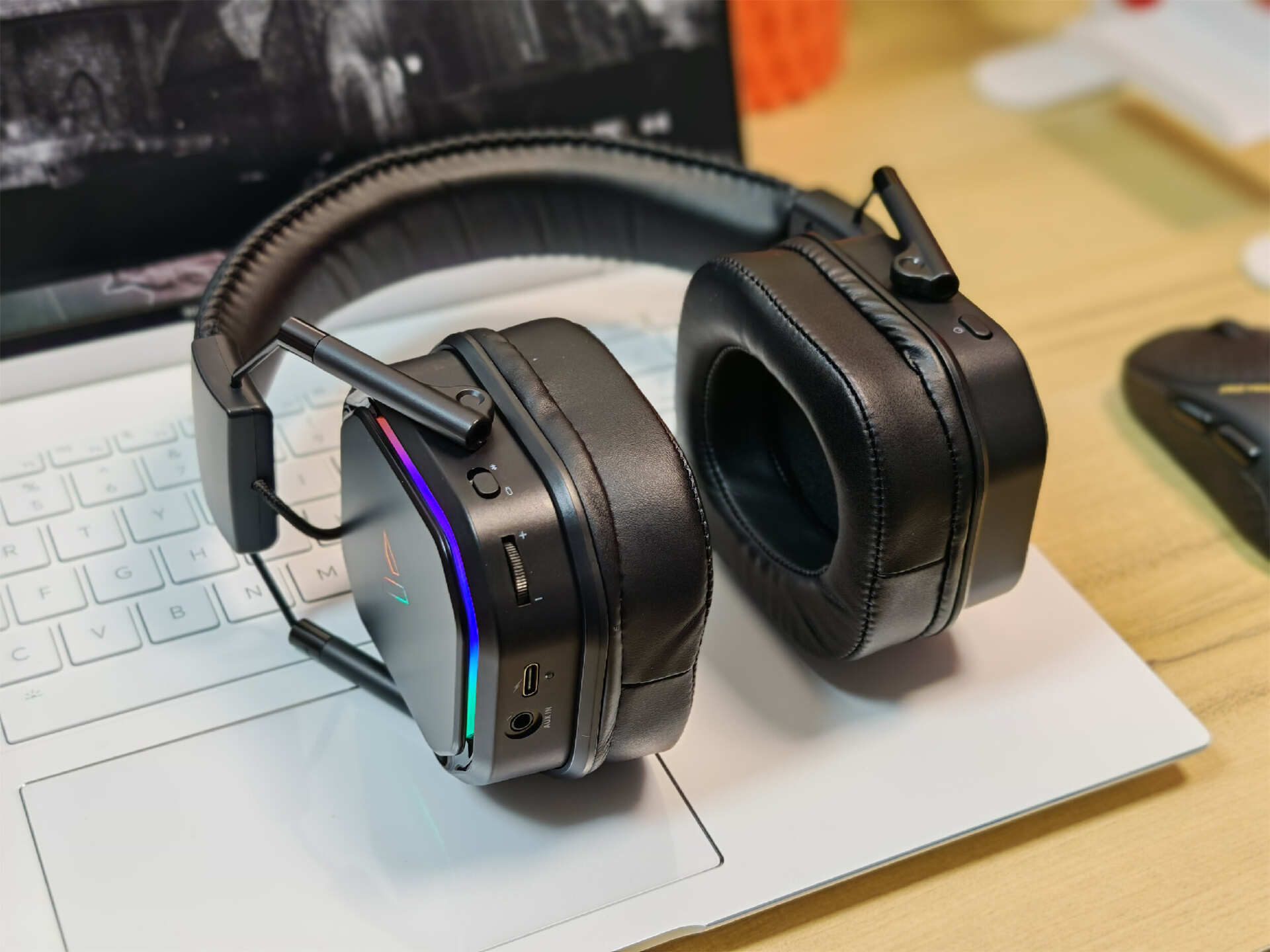佩戴舒适隔音能打,续航堪称续航怪兽。佩戴上很用心,蛋白皮全包耳贴合度满分,搭配金属伸缩头梁,大头围、小头围都能精准适配,戴眼镜的朋友也不用担心夹耳硌头,连续佩戴3小时耳朵不闷不疼,同时物理隔音效果出色,外界杂音轻松隔绝,沉浸式游戏听歌超爽。续航更是一大亮点,1200mAh大容量电池,关灯使用续航长达46小时,开启灯效也能坚持17小时;Type-C接口充电3小时就能满血复活,应急快充10分钟就能用2小时,长时间开黑根本不用频繁充电。