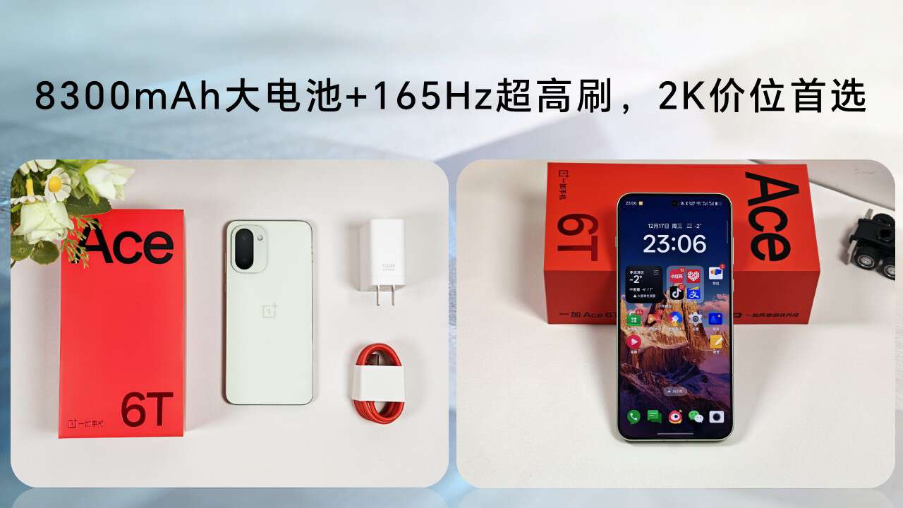 一加Ace6T165Hz高刷+8300冰川电池,外出爽够一天无压力