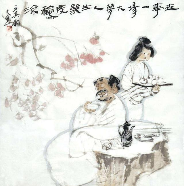 在词的上片,苏轼一开始就直抒胸臆,“世事一场大梦,人生几度秋凉?”这一声深沉地长叹,奠定了全词的悲剧情感基调,刻画出一位遭逢挫折、流落他乡的中年人,在回首不堪的辛酸往事后,发出了人生虚幻与短促的感叹。“夜来风叶已鸣廊,看取眉头鬓上”,接下来这一句,苏轼的情绪由沉郁悲凉转而低切哀回,他精心选取秋风萧瑟、落叶纷飞这两个典型的秋天景色,来感叹时光易逝、容颜将老、壮志难酬,以哀惋的笔调道出无法摆脱人生烦忧的怅惘之情。让我们看到一个眉头尽愁绪,鬓上染寒霜的落魄文人的形象。