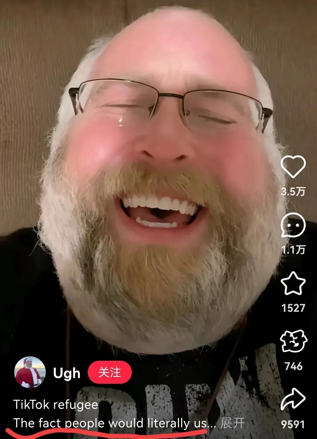 一位美国大叔甚至在视频中自嘲地笑着说:“笑死我了,美国要封禁TikTok,现在我们都开始使用中国社交软件了,哈哈哈。”
