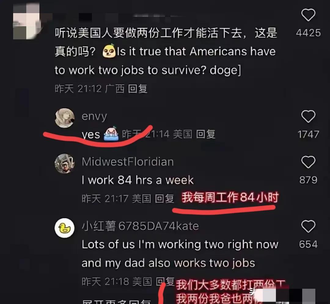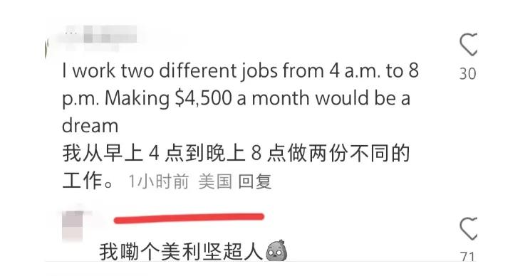 而有些美国网友更是透露,他们为了支付生活开销,不得不做两份工,每天工作16个小时,甚至有网友称自己每天从早上4点工作到晚上八点。