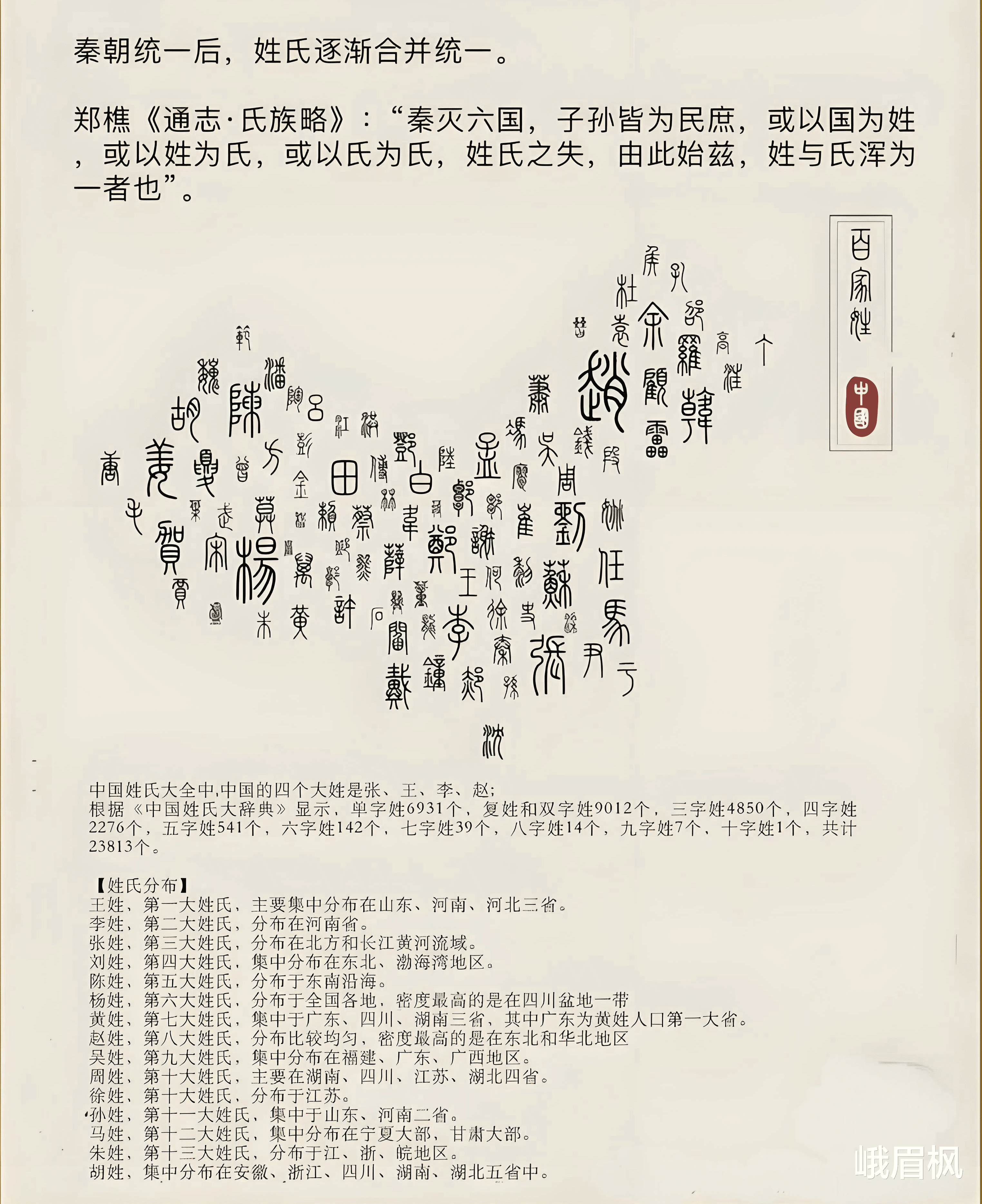 还有数不清的以国为氏的单姓,诸如秦始皇“赵政”,赢姓赵氏。