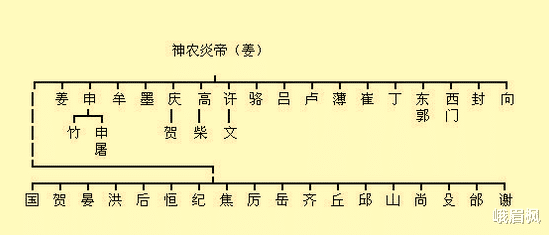 通过上图我们可以看出,炎帝(姜姓)只有一个支脉,这个比较纯粹。