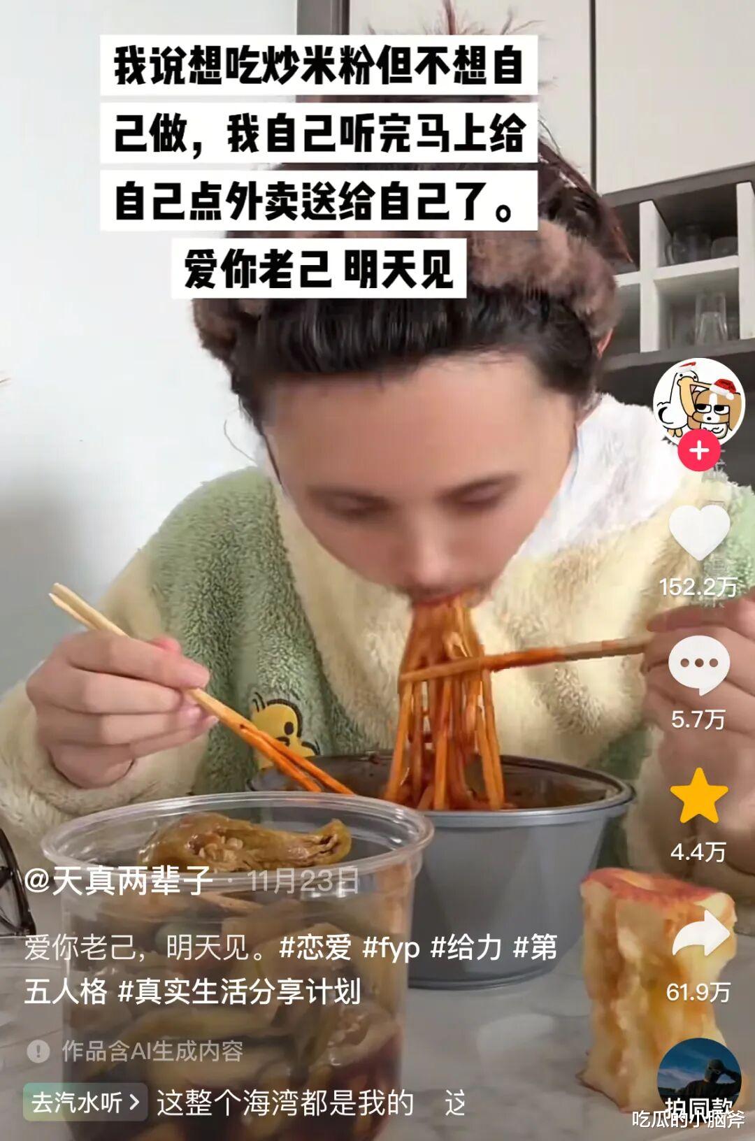 下班躺平的:“不想做饭,馋椰子鸡了。听完自己的话,油门一踩开二十公里直奔门店。爱你老己,不委屈一秒。”