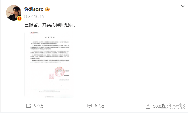 8月26日,该狗仔再次发文“其实像许凯这么做的还有一人!而且有过之而不及!号称三兄弟其中一人!我感觉套路都基本一样!都喜欢尝试新鲜事物! 但是这一类人总有一天会全部还回来!ps指不定哪天哐当一下!塌房都不行!应该说塌方”!