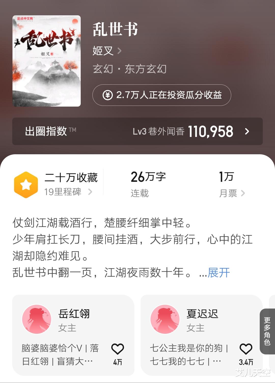 仅仅只是两天没有及时追更姬叉的《乱世书》,就错过了他新书已经突破四万均订的消息了。还是看了不少小伙伴的提醒,去将五号六号的更新看了,才确认了这件事。