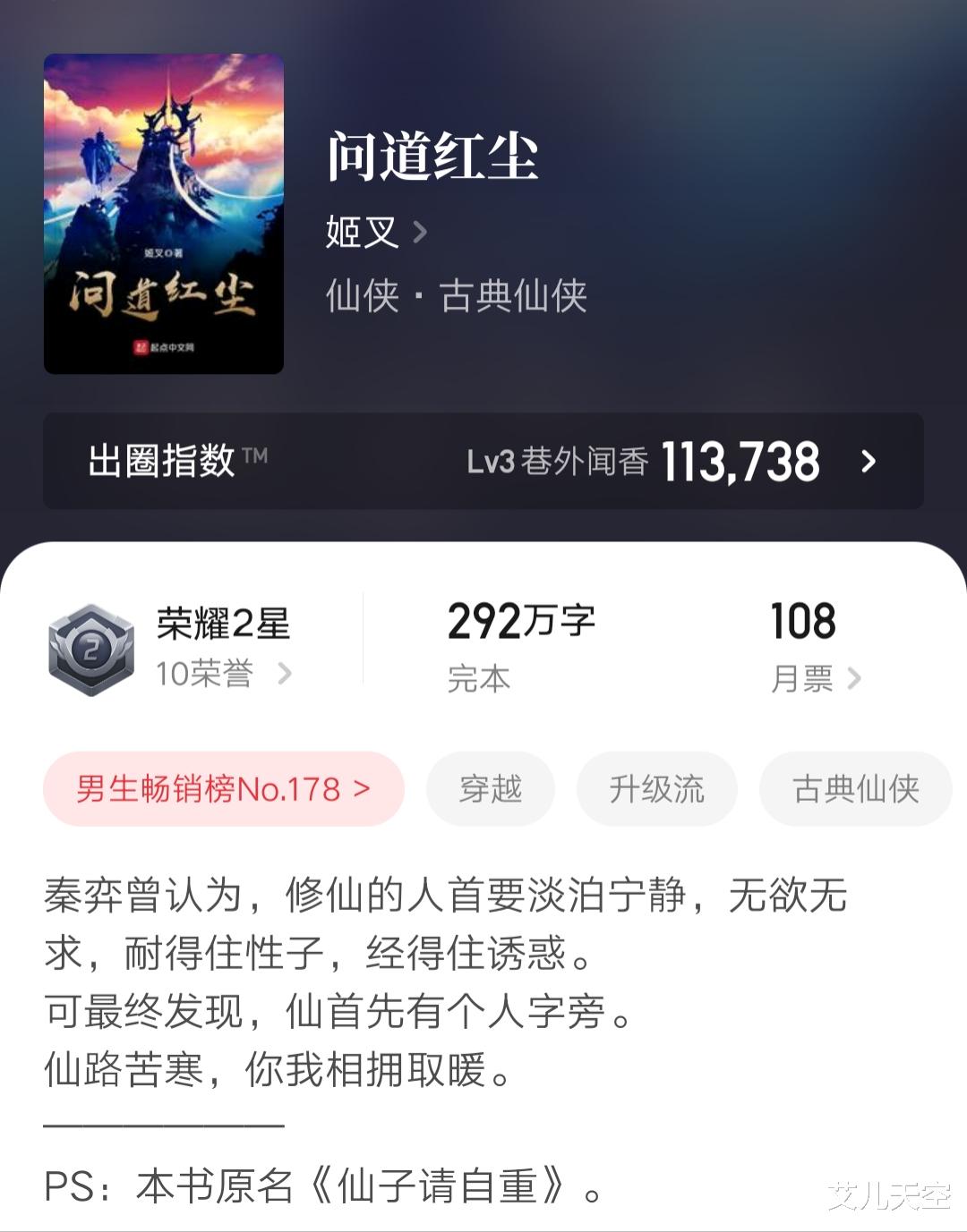 最后喜欢看后宫文的可以试试,他之前的《问道红尘》也很推荐大家看看,尤其是第一卷的“缘起南离”,首尾呼应写得非常有感觉。
