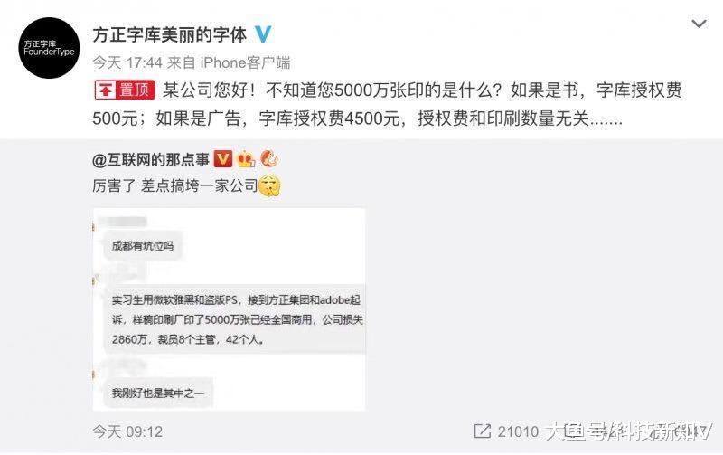 【#方正回应用未授权字体赔28